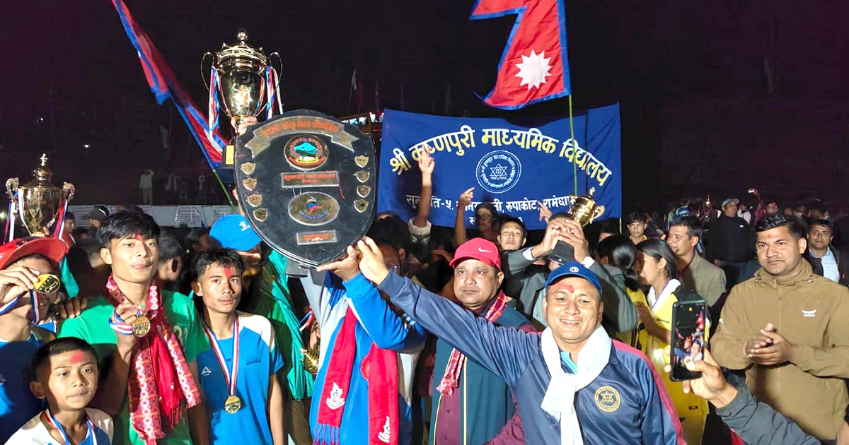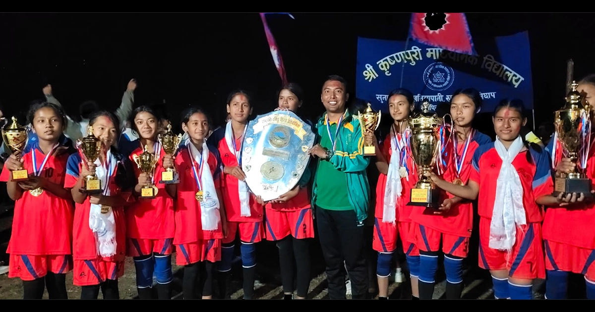 रामेछाप- सुनापति गाउँपालिका स्तरीय सातौँ राष्ट्रपति रनिङ शिल्डको उपाधि कृष्णपुरी माध्यमिक विद्यालयले जितेको छ । मङ्गलवार सम्पन्न भएको प्रतियोगितामा ७ स्वर्ण पदकसहित कृष्णपुरी माध्यमिक विद्यालय सुनापति– ५ रुपाकोटले रनिङ शिल्डको उपाधि जितेको हो ।