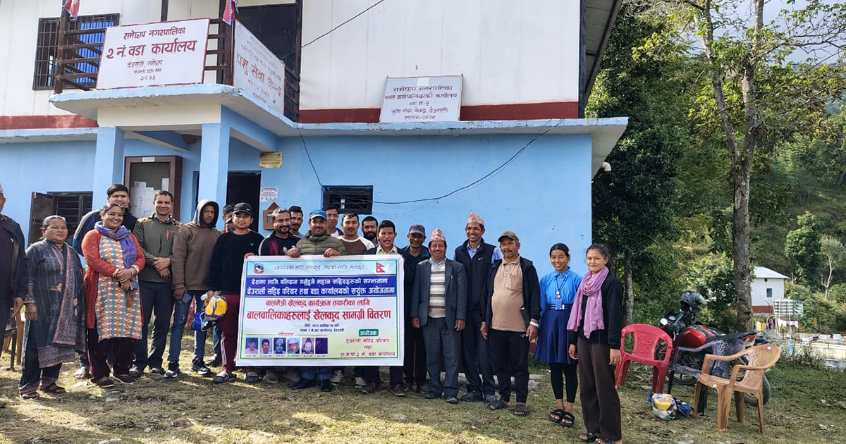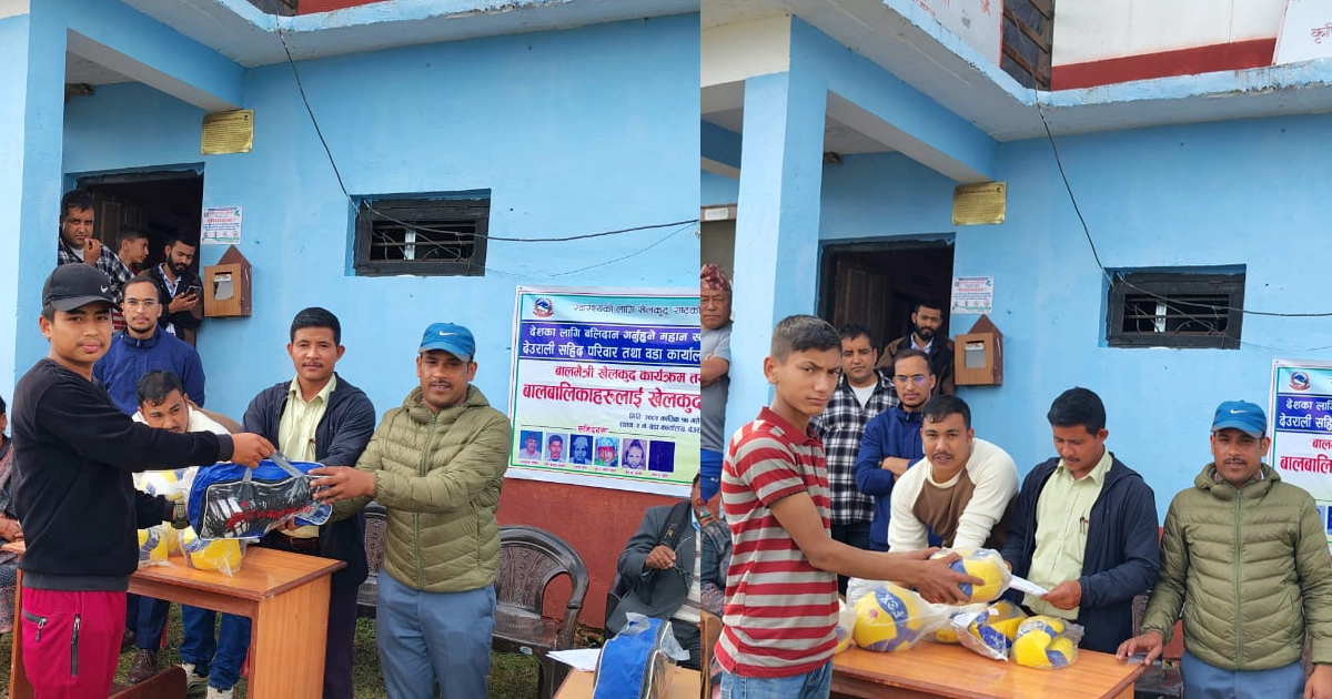 रामेछाप- रामेछाप नगरपालिका–२ देउरालीका सहिद परिवारहरूले बालमैत्री खेलकुद कार्यक्रम तयारीका लागि खेल सामग्री वितरण गरेको छ । देउराली हत्याकाण्डका ६ जना सहिदहरुको सम्झनामा उक्त खेल सामग्री वितरण गरिएको सहिद परिवारका एक सदस्य केशव बस्नेतले जानकारी दिए । उक्त कार्यक्रमका अगुवाई गरेका बस्नेतले खेलकुदप्रति बालबालिकाहरुको आकर्षण बढाउने र बालमैत्री खेलकुद कार्यक्रम तयारीको लागि सहज होस् भन्ने उद्देश्यले खेल सामग्री वितरण गरिएको बताए ।