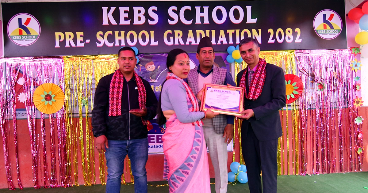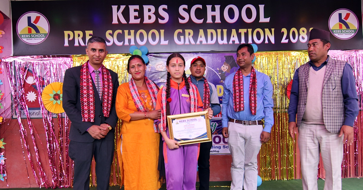 रामेछाप । रामेछापको सदरमुकाम मन्थलीस्थित आकासेमा रहेको कर्कलादेवी बोर्डिङ स्कुल (केब्स) ले शुक्रवार प्रि–स्कुल ग्राजुएसन समारोह तथा विद्यालयको २१ औँ वार्षिकोत्सव भव्य रूपमा मनाएको छ । पढाइसँगै विद्यार्थीहरूलाई व्यवहारिक ज्ञान तथा असल आचरण सिकाउने उद्देश्यले विभिन्न अतिरिक्त शैक्षिक गतिविधिहरू सञ्चालन गर्दै आएको केब्स स्कुलले गत वर्षबाट प्रि–ग्राजुएसन कार्यक्रम सञ्चालन गरेको हो । नर्सरीदेखि यूकेजीसम्मलाई बालविकास शिक्षाको रूपमा लिइन्छ भने कक्षा १ लाई औपचारिक शिक्षाको पहिलो खुड्किलो मानिन्छ । विद्यार्थीलाई शिक्षाप्रति प्रोत्साहित गर्न केब्स स्कुलले आउँदो शैक्षिक सत्रबाट कक्षा १ मा पुग्ने ५३ जना विद्यार्थीहरू भव्य औपचारिक कार्यक्रमबिच दीक्षित गरेको हो ।