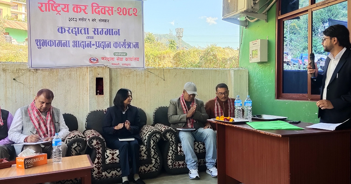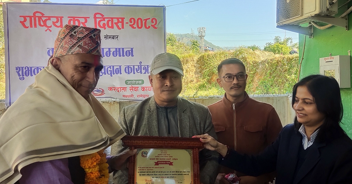 रामेछाप- रामेछापको सदरमुकाम मन्थलीबाट सञ्चालित नवजागरण बचत तथा ऋण सहकारी संस्था आय वर्ष २०८०/०८१ मा रामेछाप जिल्लाको सबैभन्दा बढी कर तिर्ने करदाताको रुपमा सम्मानित भएको छ । राष्ट्रिय कर दिवस २०८२ को अवसरमा सोमवार करदाता सेवा कार्यालय मन्थलीले करदाता सम्मान तथा शुभकामना आदानप्रदान कार्यक्रम आयोजना गरी सबैभन्दा बढी कर तिर्ने करदाताका रुपमा नवजागरण बचत तथा ऋण सहकारी संस्थालाई सम्मान गरेको हो ।
